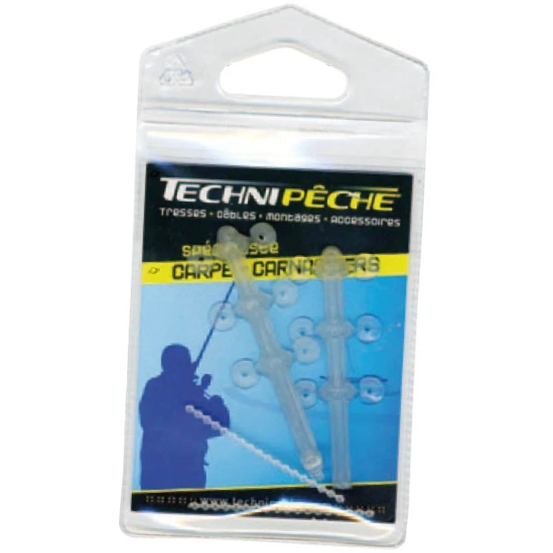 Ces stops-appâts permettront de pêcher aux cheveux avec des graines fragiles ou esches molles risquant de se déchirer au lancer. La coupelle évite par sa surface que le stop-appât coupe l’esche fragile au lancer. Cette coupelle se positionne entre l’esche fragile et le stop-appât.